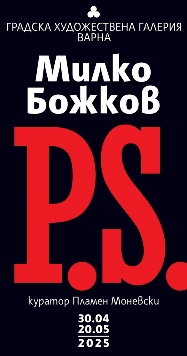 Градската художествена галерия Борис Георгиев - Варна, представя от 30 април до 20 май 2025 г. изложбата P. S. на един от най-уважаваните български художници - Милко Божков. Идеята е да се покаже творческият процес на един забележителен артист за период от 35 години - 1991 - 2025 г. Някои от творбите, създавани за неговите изяви в Люксембург между 1991 и 2000 г., ще могат да бъдат видени от публиката във Варна за първи път. Изложбата включва и най-новите живописни работи на автора, датирани от 2025 г. Внушителната изложба заема 6 зали на първия етаж във Варненската галерия, в които са експонирани произведения, изпълнени в различни техники - живопис с маслени бои и акварел, графика - офорт, литография, акватинта, преге, както и рисунки. Могат да се видят и оригиналните цинкови плочи на графиките, което дава възможност на зрителя да проследи целия процес на създаване на една графична творба. Своето място в експозицията имат и две библиофилски издания - Елегия по древен египетски текст, подготвяна от 1983 до 1987 г. и отпечатана в 20 екземпляра, като във всеки отпечатък текстовете са написани на ръка от художника, и Думи и Графити по текстове на Борис Христов.