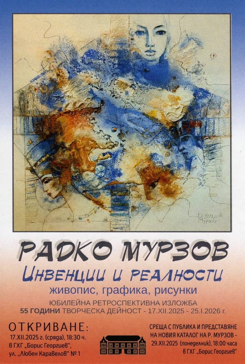 Радко Мурзов - инвенции и реалности. Юбилейна ретроспективна изложба, живопис, графика и рисунка. На 29 декември, среща с публика и представяне на новия каталог на автора.