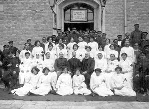Историята на тази сграда, строена за Мъжка гимназия е все още неизяснена напълно. Проектът на сградата е предоставен от Дирекцията на строежите през 1884 г. Същата година, Генчо Кънев е поканен да поеме строителството и той успешно завършва сградата само за две години 1884/86. Авторството на сградата е спорно.Предположенията на проф. Никола Мавродинов са за авторство на шведския архитект Брокс, по това време на работа в Разград. Възможно е да бъде и на чешкия архитект Купка, който строи във Варна, или на италианския архитект Валентино,. Според арх. Маргарита Коева и арх. Никола Тулешков, автор на сградата е австрийският архитект Фридрих Грюнангер.
