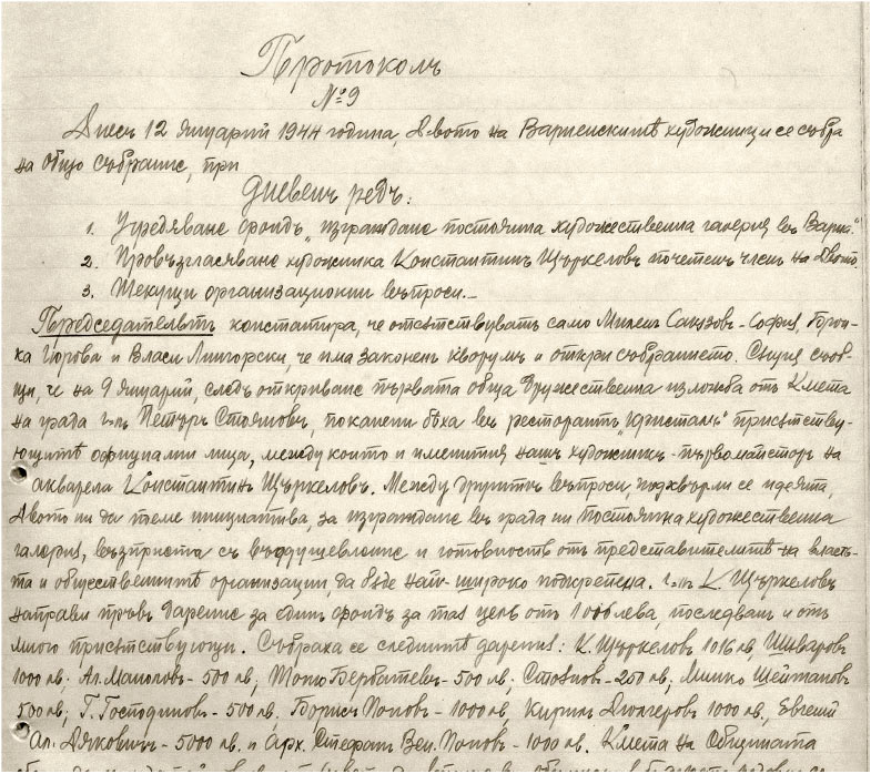 С пожълтели страници, по чудо запазена Протоколната книга на дружеството на варненските художници е документ, който ни дава ценна информация за едно смутно, не много далечно, но избледняващо минало.